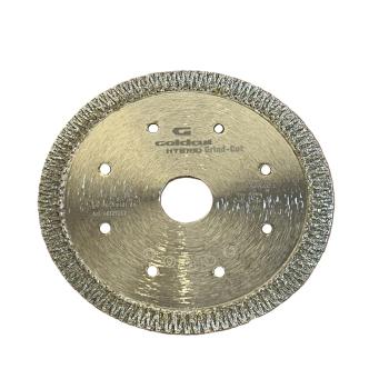 Die neue Goldcut HYBRID ist ein Premium Produkt im Trockenschnitt. Sie vereint die technischen Vorteile einer gesinterten und einer galvanisch belegten Diamanttrennscheibe mit einem geschlossenen Schneidrand. Das Ergebnis: Eine leistungsstarke, schnittige Diamanttrennscheibe mit einem perfektem Schnittbild im Finish, insbesondere geeignet für alle harten Materialien wie Keramik, Hartkeramik und Granit.