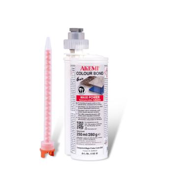 Gelartiger 2-Komponentenkleber auf Basis Epoxyacrylat. In verschiedenen Farben vergefärbt. Hohe Klebkraft, sehr schnelle Oberflächentrocknung und Weiterverarbeitbarkeit (ca. 5-7 min bei 20°). Mischungsverhältnis 10:1.Lebensmittelunbedenklich!